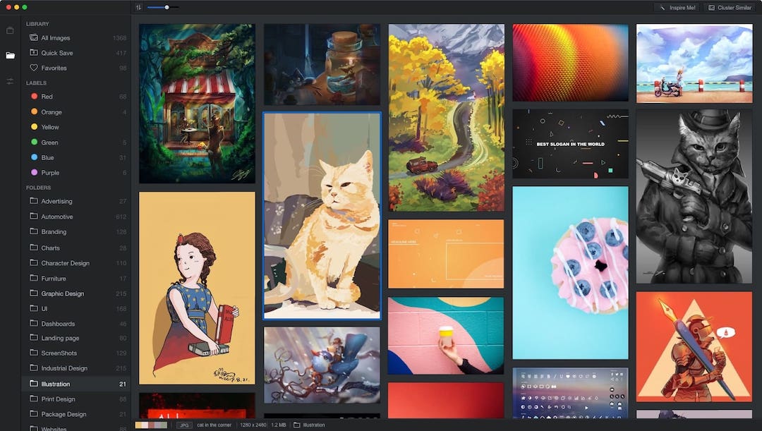 Cluster images based on their visual styles. Find related contents easily.